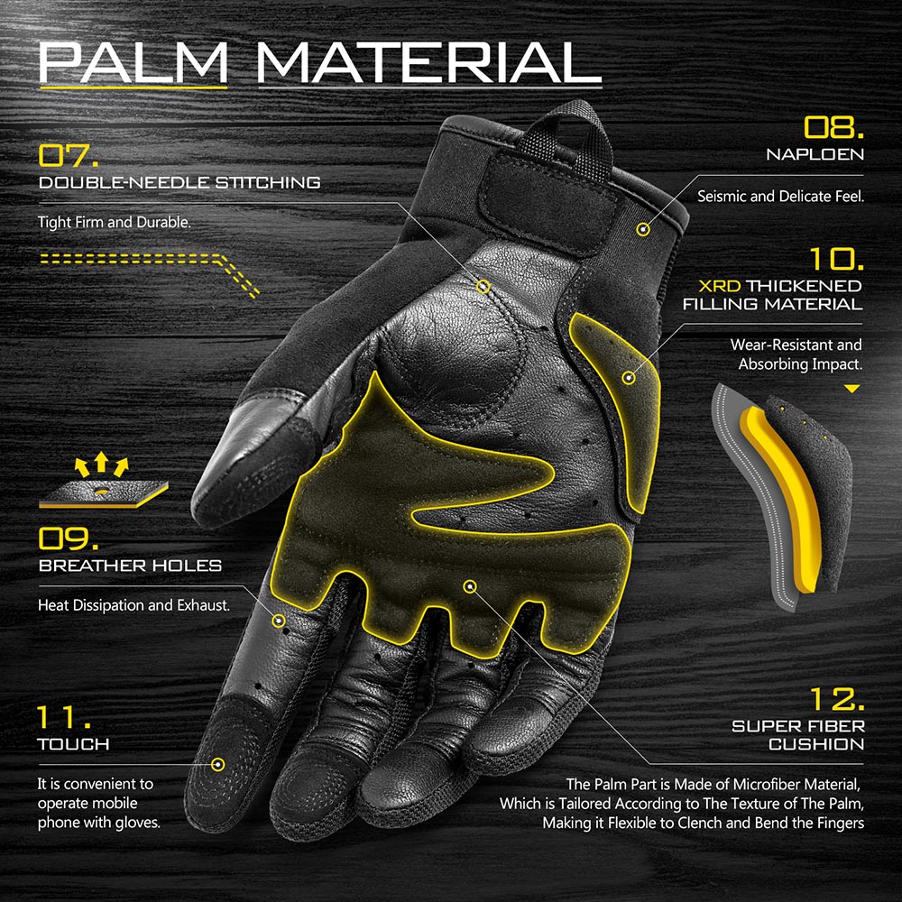 Мото-рукавички розроблені із захистом суглобів EVA, який ефективно знижує силу удару і захищає суглоби кінчиків пальців. Водночас може ефективно збільшити силу удару без втрати гнучкості.