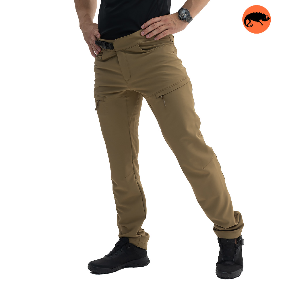 Модель має вшитий ремінь з регулюванням, що дозволяє зручно фіксувати посадку. Практичне рішення – 5 кишень: дві стандартні з боків, дві на стегнах на блискавках та одна задня кишеня на блискавці. Внизу штанин є регулювання об'єму, що особливо зручно для походів або активних дій.