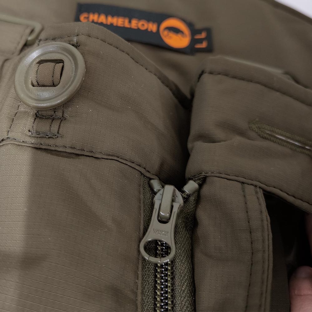 Верх штанів виготовлений із міцної, вологостійкої плащової мембранної тканини 100% NYLON 6.6 FD Cordura ripstop PU Milky Lamination (100% нейлон) щільністю 195 г/м2. Тканина зносостійка, міцна, стійка до стирання та розривів. Завдяки внутрішньому мембранному покриттю куртка має відмінну водонепроникність та гігроскопічність, відповідає ISO811 ≥ 10000 мм Н2О. Така тканина також перешкоджає проникненню вітру, що не продувається. Завдяки цій властивості знижуються втрати тепла з-під одягу, і частково створюється бар'єр зовнішнього високотемпературного впливу. Мембрана виводить зайве тепло та вологу назовні, підтримуючи мікроклімат усередині одягу, забезпечуючи додатковий комфорт. Підкладкова тканина 100% нейлон щільністю 36 г/м2.
