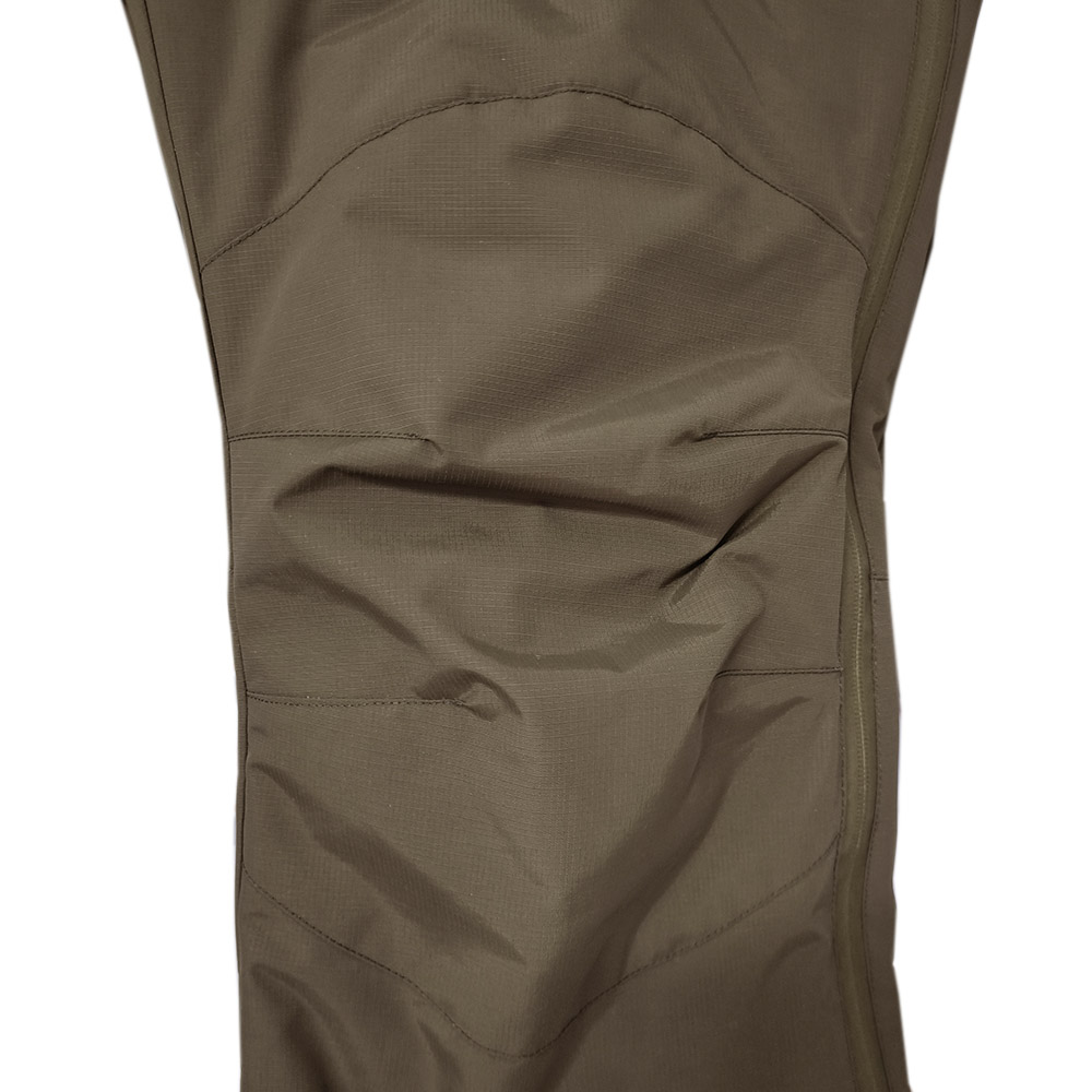 Верх штанів виготовлений із міцної, вологостійкої плащової мембранної тканини 100% NYLON 6.6 FD Cordura ripstop PU Milky Lamination (100% нейлон) щільністю 195 г/м2. Тканина зносостійка, міцна, стійка до стирання та розривів. Завдяки внутрішньому мембранному покриттю куртка має відмінну водонепроникність та гігроскопічність, відповідає ISO811 ≥ 10000 мм Н2О. Така тканина також перешкоджає проникненню вітру, що не продувається. Завдяки цій властивості знижуються втрати тепла з-під одягу, і частково створюється бар'єр зовнішнього високотемпературного впливу. Мембрана виводить зайве тепло та вологу назовні, підтримуючи мікроклімат усередині одягу, забезпечуючи додатковий комфорт. Підкладкова тканина 100% нейлон щільністю 36 г/м2.