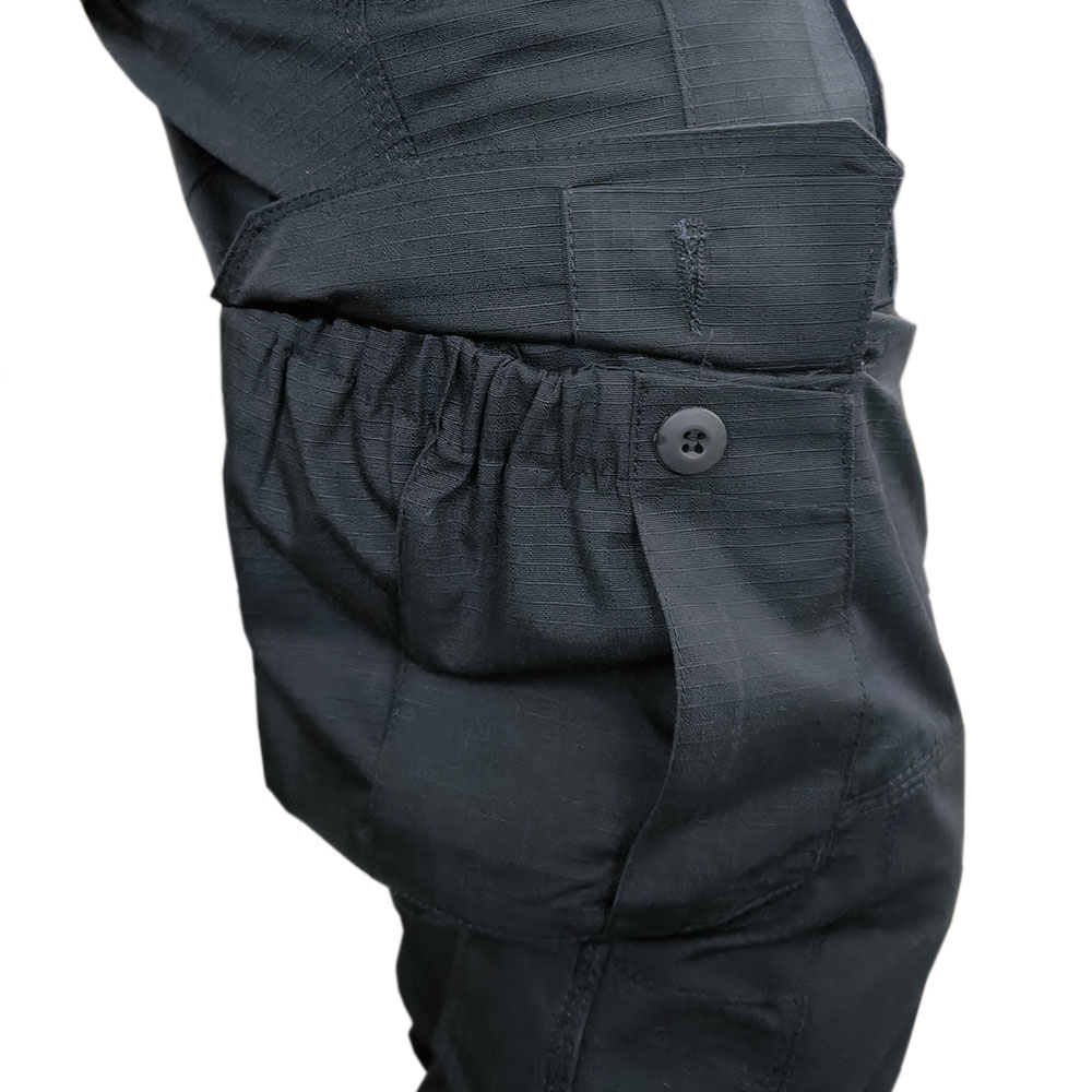 Тактичні штани Shooter Gen 3 Black зшиті зі зносостійкої тканини рип-стоп принт CVC 60% бавовна, 40% поліестер, щільність тканини 230 г/м2. Тканина міцна, має гарну повітропроникність, не схильна до гниття, вицвітання, зносостійка. У структуру тканини вбудовані армовані нитки, що утворюють так званий «каркас», який значно підвищує міцність без збільшення ваги матеріалу. У разі порізу, розриву тканини армований «каркас» запобігає збільшенню області пошкодження.