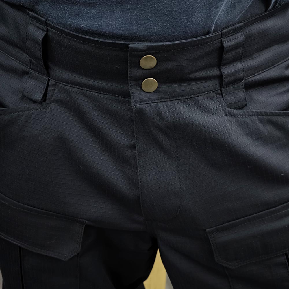 Тактичні штани Shooter Gen 3 Black зшиті зі зносостійкої тканини рип-стоп принт CVC 60% бавовна, 40% поліестер, щільність тканини 230 г/м2. Тканина міцна, має гарну повітропроникність, не схильна до гниття, вицвітання, зносостійка. У структуру тканини вбудовані армовані нитки, що утворюють так званий «каркас», який значно підвищує міцність без збільшення ваги матеріалу. У разі порізу, розриву тканини армований «каркас» запобігає збільшенню області пошкодження.