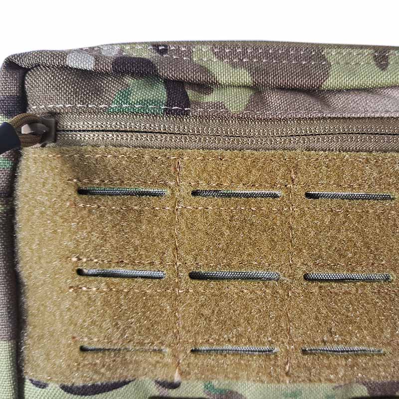 На лицьовій стороні – лазерна перфорація системи Molle. Спереду напашник має велкро панель, виготовлену за технологією LaserCut і призначений для кріплення патчів та спорядження. Знизу напашника розміщені еластичні кріплення для турнікету.