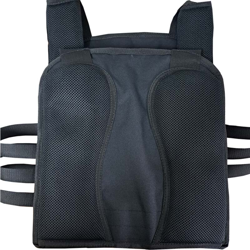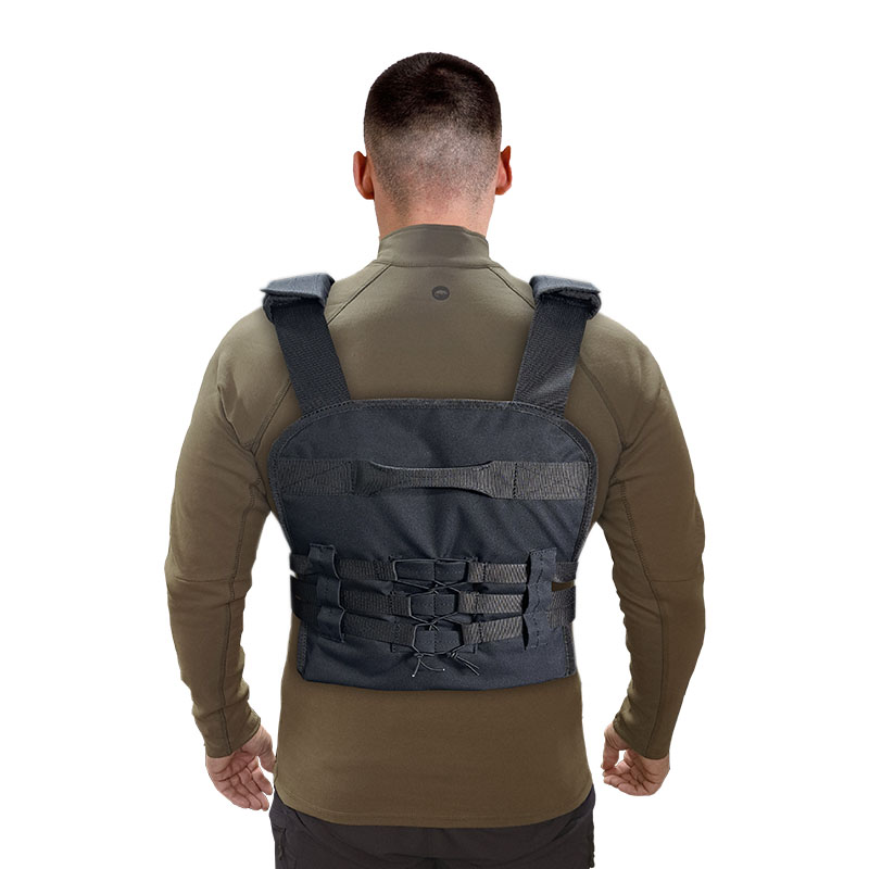 Спереду на жилеті передбачені система петель Molle для додаткових підсумків і велкро-липучка для кріплення розпізнавальних знаків. Плечові лямки та за об'ємом на грудях жилет-плитоноску можна відрегулювати під необхідний розмір. З внутрішньої сторони на спині жилет оснащений демпферною сітковою вентиляційною підкладкою для комфорту носіння (тканина сітка 3D, щільністю 340 г/м2).