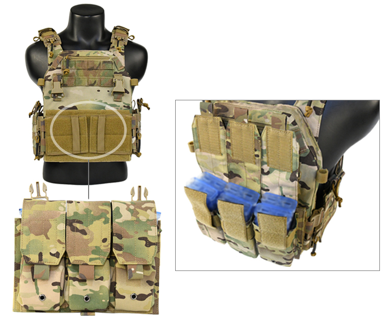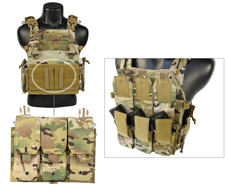 Жилет тактический плитоноска Multicam с тройным подсумком на 6 магазинов с системой Molle изготовлен из высококачественного прочного и износостойкого материала нейлона 1050D, подкладка нейлон 420D. Вес: 1.5 кг. Плитоноска позволяет разместить 6 магазинов АК-74, АР-15 или АКМ. Прочная ткань устойчива к истиранию и разрывам, обладает водоотталкивающими и водонепроницаемыми свойствами, термоустойчивостью, грязеустойчивостью и простотой в уходе. Это обеспечивает длительную эксплуатацию изделия. Плитоноску можно комбинировать с тактическим штурмовым рюкзаком. Рюкзак прикрепляется к спине тактического жилета плитоноски или используется вместо задней части плитоноски, тем самым облегчив ее.