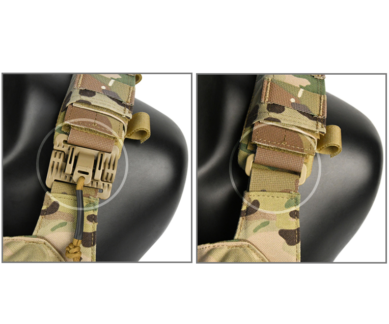 Изделие снабжено системой быстрого сброса, что позволяет быстро расстегнуть плитоноску, обеспечивая комфорт и скорость использования.