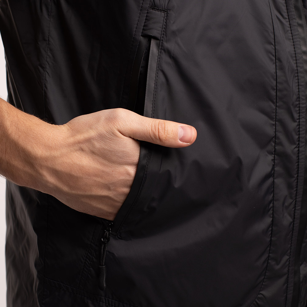 Благодаря легкости и компактности жилет удобно брать с собой в поездки, и он не займет много места в дорожной сумке или чемодане. В боковых функциональных карманах можно рационально разместить и хранить мелкие предметы. Боковые карманы и центральная застежка снабжены качественными водонепроницаемыми молниями. Есть также один внутренний карман для хранения мелочей.