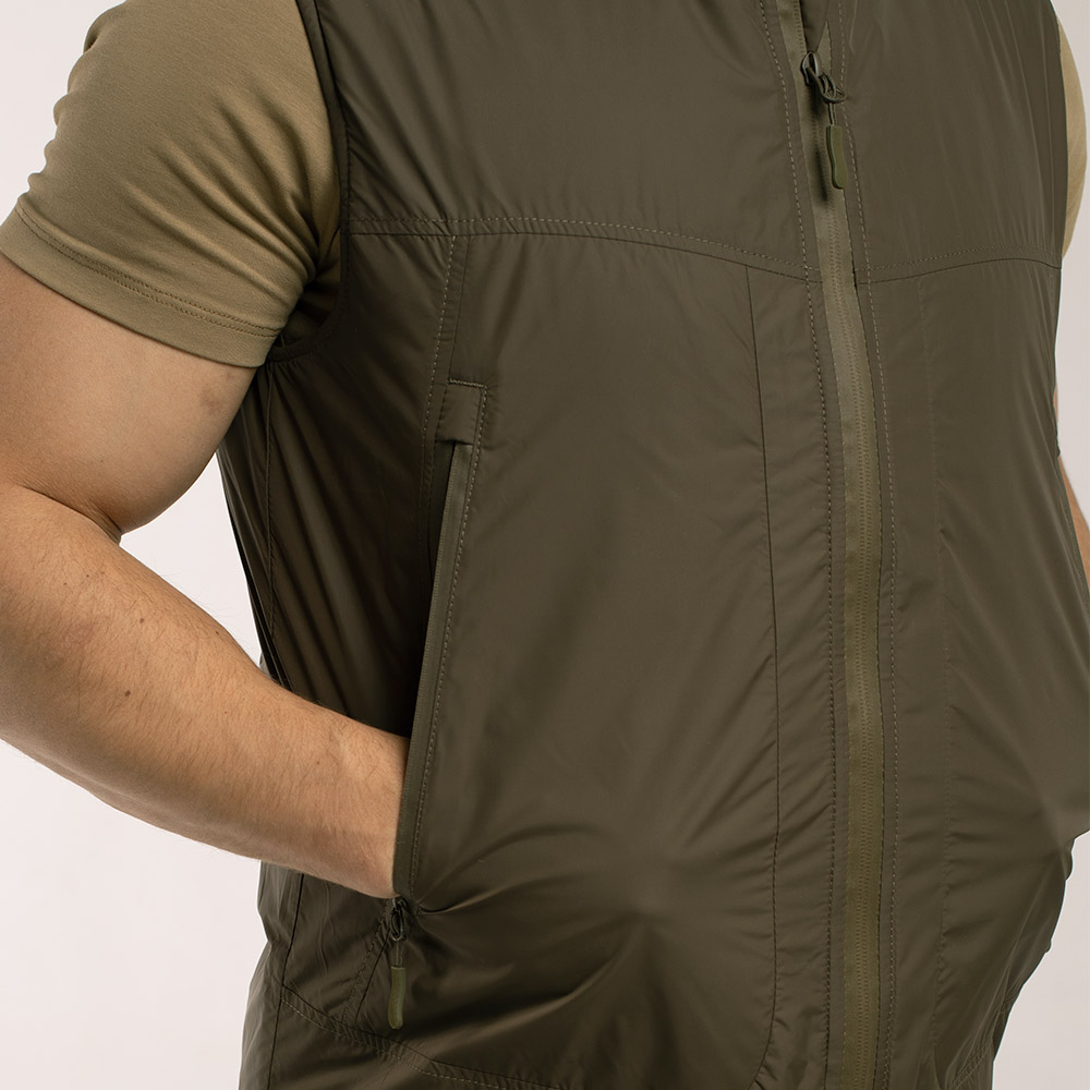 Благодаря легкости и компактности жилет удобно брать с собой в поездки, и он не займет много места в дорожной сумке или чемодане. В боковых функциональных карманах можно рационально разместить и хранить мелкие предметы. Боковые карманы и центральная застежка снабжены качественными водонепроницаемыми молниями. Есть также один внутренний карман для хранения мелочей.
